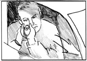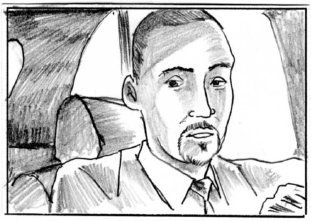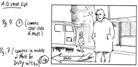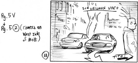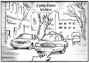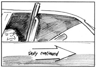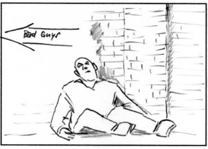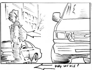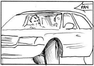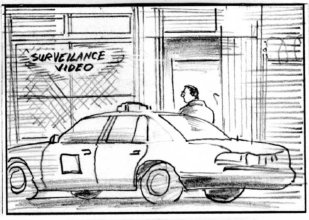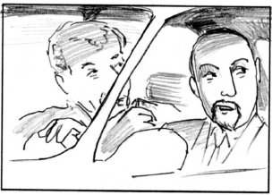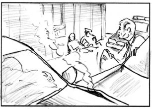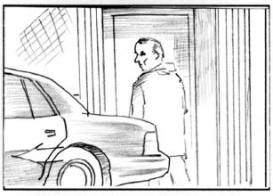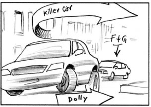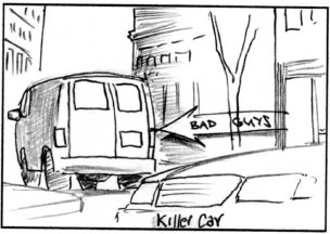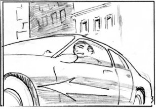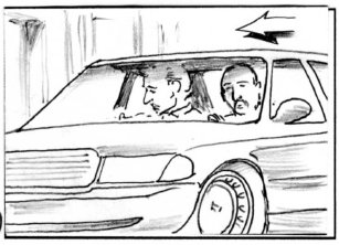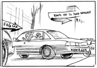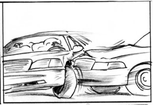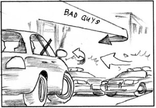 Overhead of: Joe & Ed's car t-bones the bad guy's car and sets off the air bags
