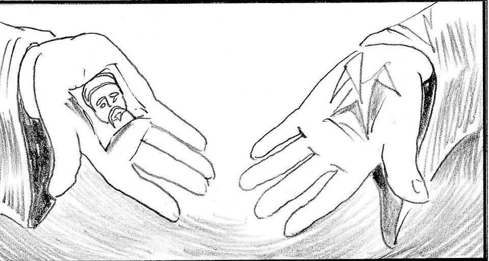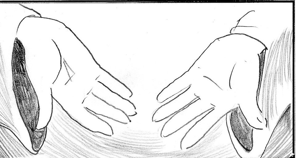 master holds out his hands