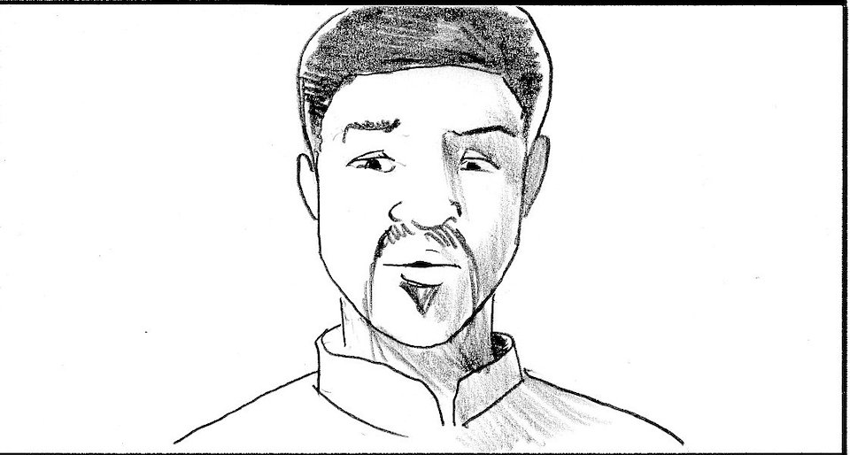 Zoom into the master's face.