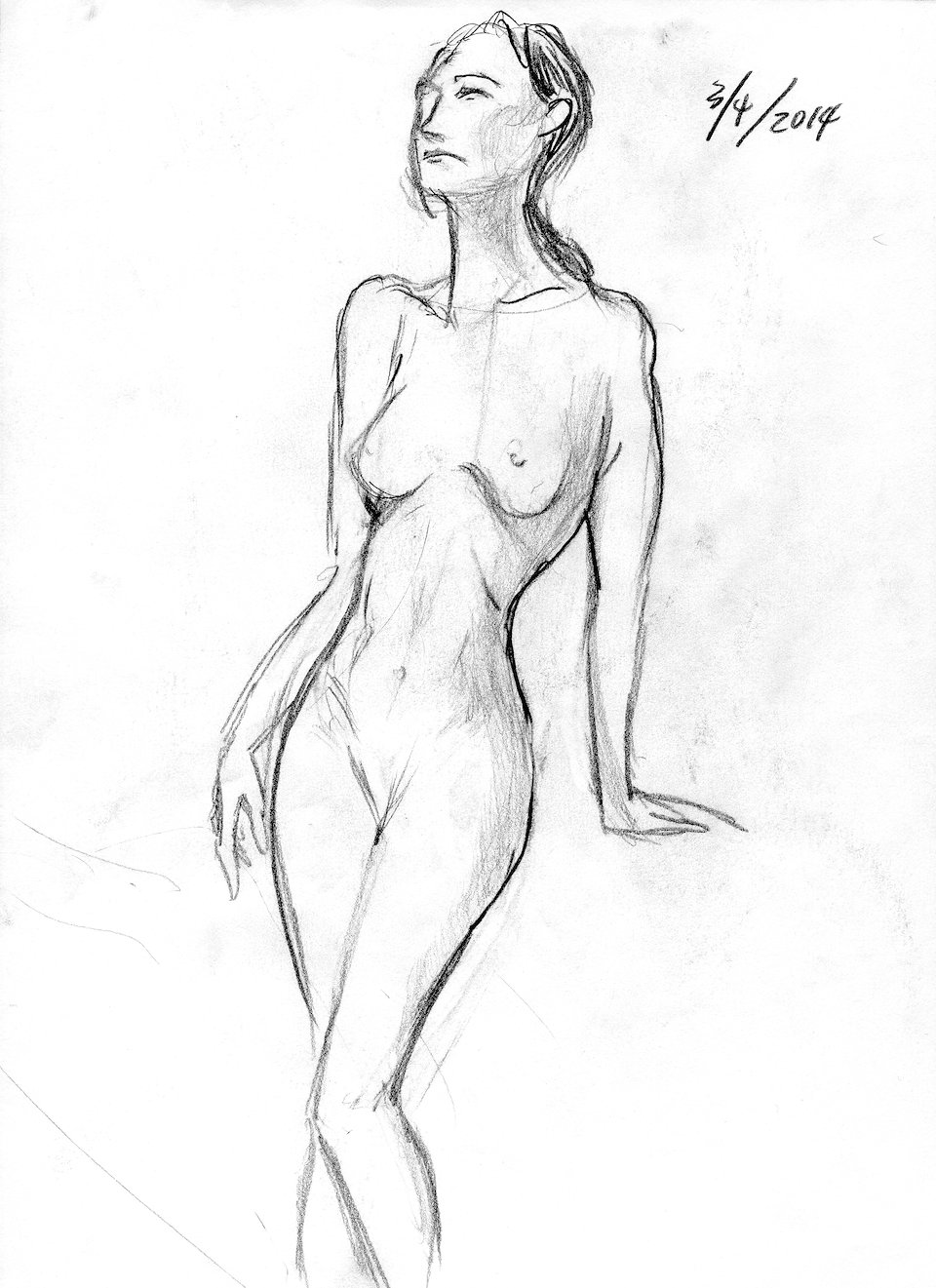 Pony tailed man gazing up at Society of Illustrators sketch night