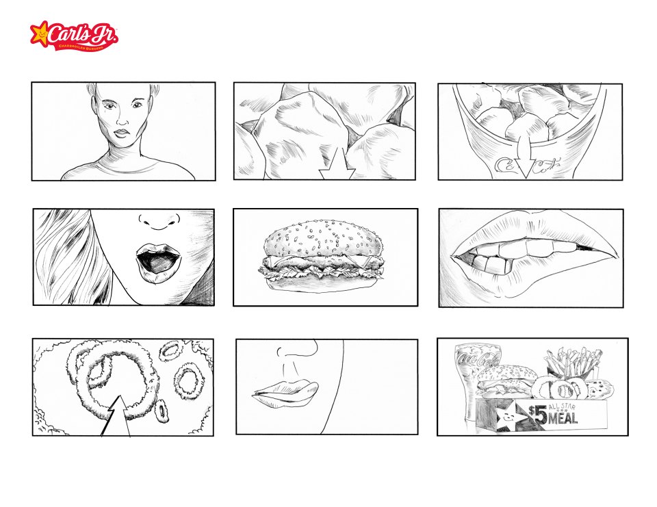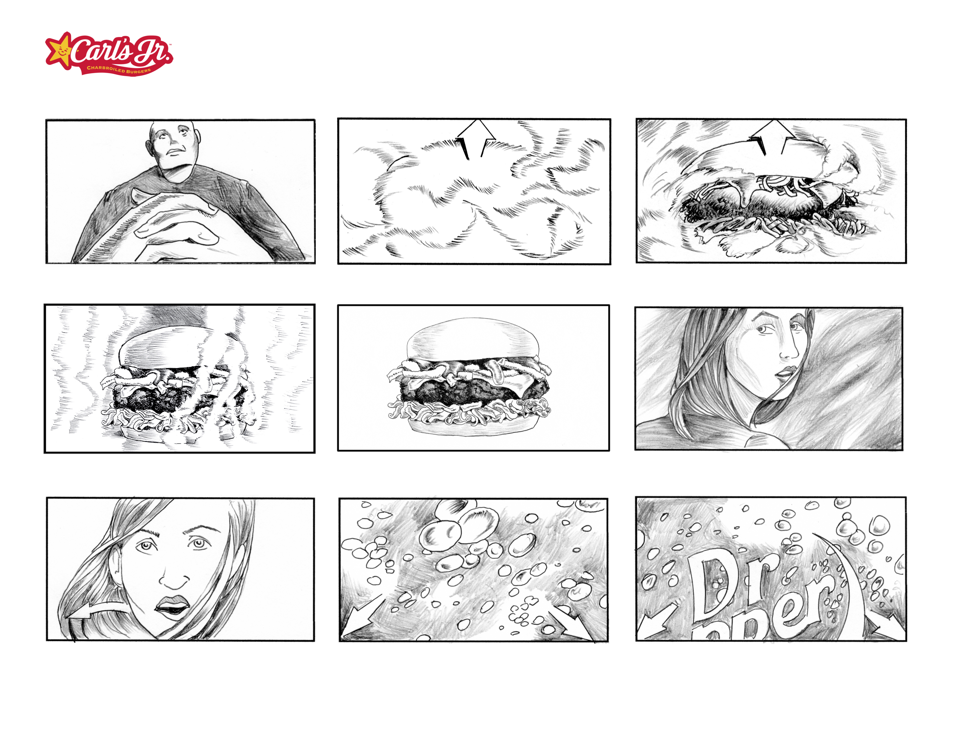 Production Co.: Taste In Motion Director: Thomas Schauer Selected Frames from shooting boards for series of spots for Carl’s Junior